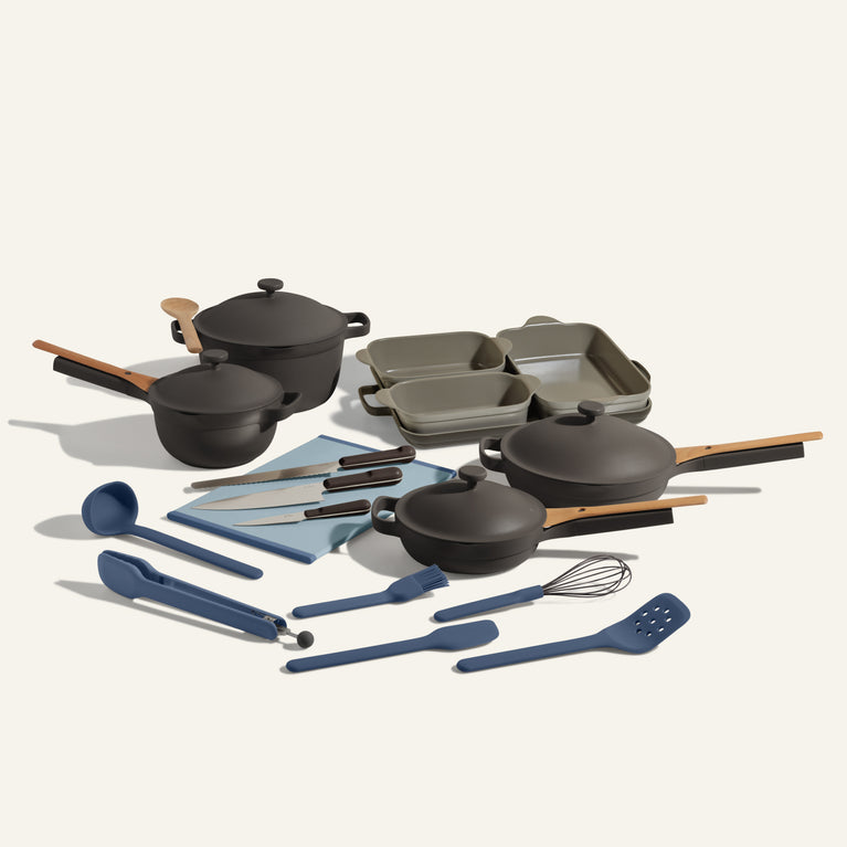 Poof! Snap your fingers and say hello to a brand-new kitchen. Includes the Ultimate Cookware Set, Daily Board, Utensil Essentials, and trio of Home Cook Add-Ons.